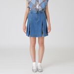 【トップス】身頃部分が取り外し可能なチェックブラウスです。アウト側は、袖のキャザーとリボンががアクセントになっています。インナー側は、シンプルなノースリーブです。【スカート】タック部分から覗くクレストブリッジチェックがポイントです。プレッピースタイルが完成するアイテムです。