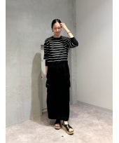 【トップス】カラミ調のカットソー素材を使用したノースリブカットソー。肩にタックを入っていることで、少し肩が隠れるようになっています。【パンツ】綿のようなナチュラルな見え感と風合いを表現した素材です。やや薄手で、程よい反発感としなやかなストレッチ性が特徴。