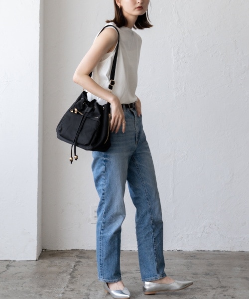 【Bag】コロンとした可愛らしいフォルムながら、光沢のあるナイロン素材で上品な印象に。