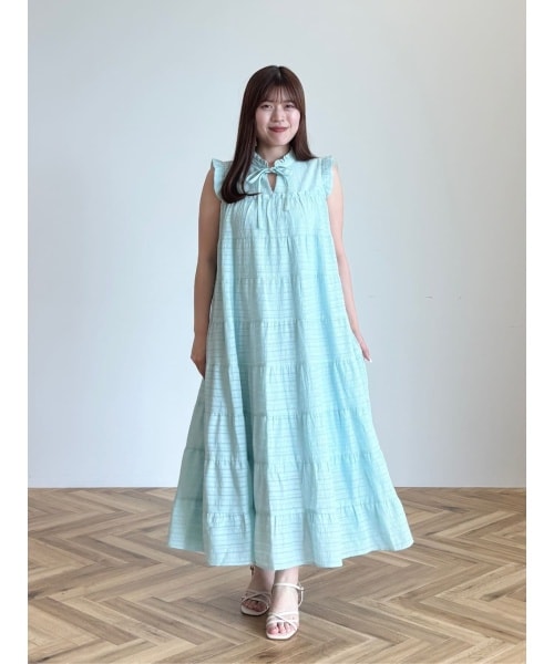 【ワッシャーティアードワンピース】Aラインシルエットが特徴的なワンピース。襟フリルと肩袖フリルになっていて、お顔周りにより可愛らしさを兼ね備えてます♪