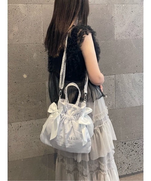 【ダブルリボン2Wayトートバッグ】サテンの上品な光沢感とサイドの大きなリボンが大人可愛いデザインです!ショルダーは取り外し可能なので、コーデに合わせてお使いいただける2Way仕様です◎