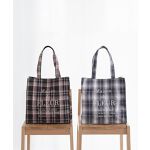 【ブランドロゴ刺繍チェックスクエアトート】人気のブランドロゴ刺繍トートバックからチェック柄が新登場♪A4サイズ収納可能なので、お出かけはもちろん通勤通学用のバッグにもお使いいただけます!