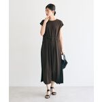 【着用サイズ ワンピース:F カーディガン:F】柔らかく落ち感のあるカットソー素材で仕立てたワンピース。配色のサイドプリーツが女性らしく、一枚で品良く着映えるデザインです。