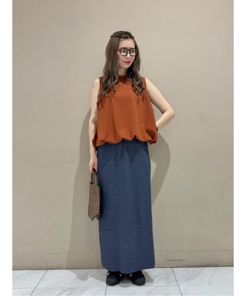 【着用サイズ いずれも:F】肌触りのさらりとした素材のノースリーブプルオーバー。裾にゴムを施しふんわりさせたバルーンシルエットがフェミニンな雰囲気を演出します◎