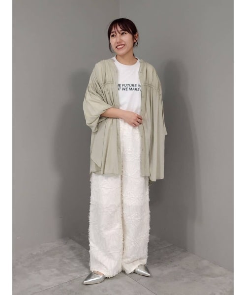 【着用サイズ Tシャツ:M チュニック:F パンツ:F】ヒップラインがしっかりとカバーできる丈感のチュニック。袖口はゴムになっていて腕まくりもしやすかったです!