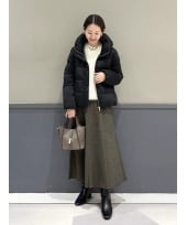 【着用サイズ ニット:F スカート:F】大柄のチェック柄がシーズンムードを盛り上げる主役級スカートです。シルエットをキープするメモリー素材を使用し、程よいハリ感と綺麗なフレアラインが特徴的なデザインです。