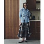 【着用サイズ ニット:F スカート:F】大柄のチェック柄がシーズンムードを盛り上げる主役級スカートです。シルエットをキープするメモリー素材を使用し、程よいハリ感と綺麗なフレアラインが特徴的なデザインです。