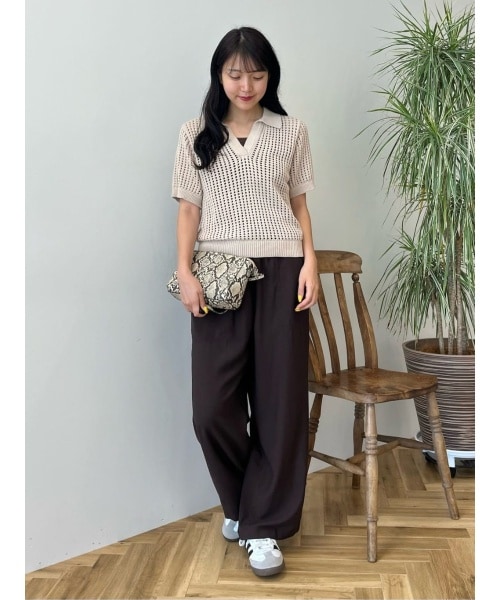 【着用サイズ いずれも:M】メッシュ編みトップスがシーズンライクなカジュアルコーデ。コンパクトなシルエットですっきり見えするアイテムです。