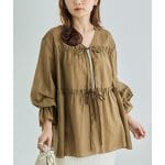 涼しげな楊柳素材を使用した、ギャザーが華やかなブラウス。前開きデザインで羽織としても使える2WAY仕様です。フロントのリボンは結んでも垂らしてもかわいく、ふんわりとしたボリューム感が、女性らしい柔らかさを演出します。