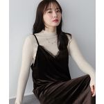 首元のレースがポイントの上品&フェミニンなベロアキャミワンピース。 コーデの主役にもなるカジュアルガーリーなアイテムです。