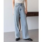 フェミニンなディテールが詰まったノースリティアードブラウスにデニムパンツを合わせたきれいめカジュアルスタイル。
