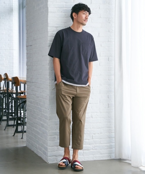 【トップス】 忙しい朝もこれ1枚でコーデが決まるフェイクレイヤードTシャツ。 吸水速乾・通気性がよく蒸れにくい機能的なアイテムです。 【パンツ】 軽さ、動きやすさ、涼しさを兼ね備えた、夏の味方・GOKU楽AIRシリーズのクロップドパンツ。