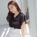 シアー袖とボウタイで華やかさをプラスしたニットに、ブラウンのレースフレアスカートで上品な甘さを演出。 フェミニンさと落ち着きのバランスが絶妙な大人コーデ♪