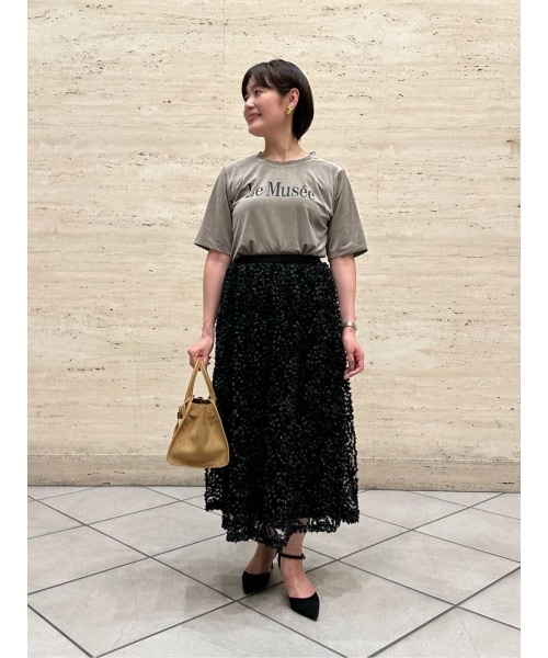 【シアートリコットベロアプリントTシャツ】 シアー感のあるベロア素材のロゴTシャツ。