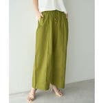 【着用サイズ いずれも:F】程よくハリ感のあるコットン素材で仕立てたイージーパンツ。ワイドシルエットながらもピンタックの縦長ラインがすっきりとした印象をプラスします。