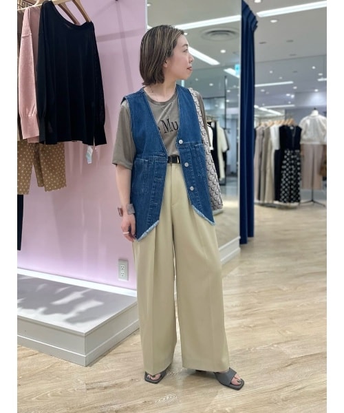 デニムベストコーデ インナーにシアーベロアを合わせる事で秋をちょっとだけ先取り!