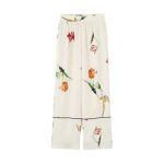 フラワープリントのパンツ。ストレートのような太すぎないワイドパンツです。ウエストもオールゴムで着心地が良く、つるっとした素材が夏でもサラリとお召しいただけます。ウエストから垂れるベルトはそのままで着用します。