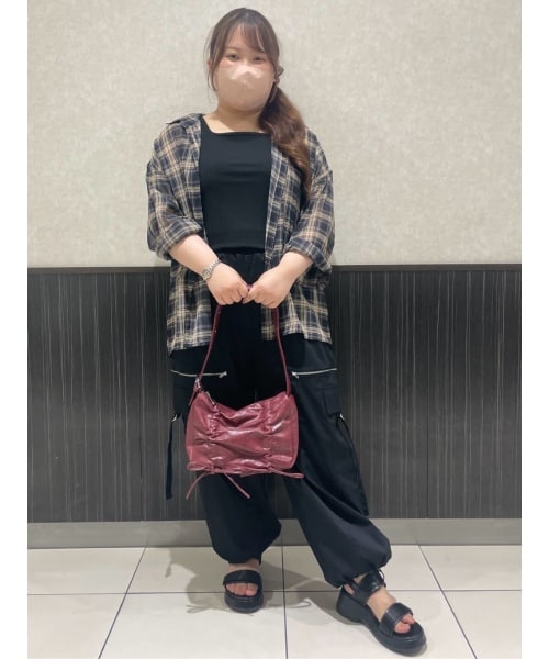 チェックシャツは、透け感があるので重たく見えず涼しく着られます◎一枚で秋らしさを演出してくれます♪カーゴパンツは、ウエストがゴムになっていて動きやすいです◎太もも部分のZIPを開けたり、裾を絞ったりとお好みのスタイルで着られるのも嬉しいポイントです♪