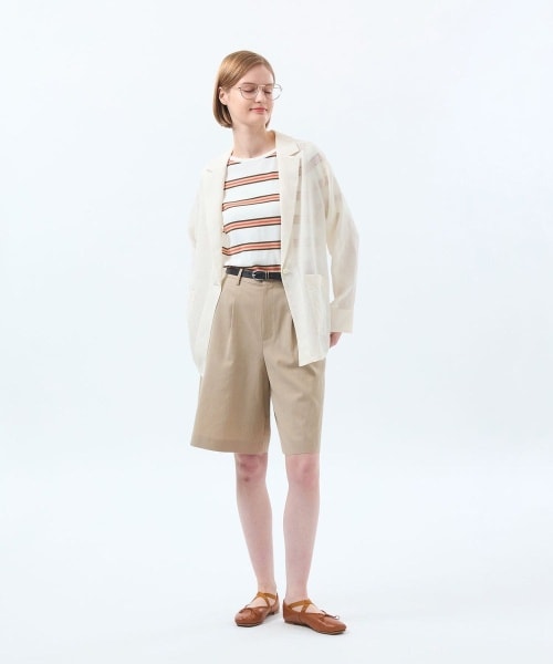 【ジャケット】シャツ感覚で軽く羽織れるシングルジャケット。裏地のない仕様でふわっとした軽い着用感がポイント。暑い時期にさっと羽織れば日差しや冷房避けにもなり、軽快な着心地ながら、テーラード型で通勤シーンにぴったりのキレイ目ジャケットです。