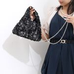 マットなスパンコールが大人っぽいミニ2wayトライアングルバッグ。チェーンショルダー付きで肩掛けもできます。
