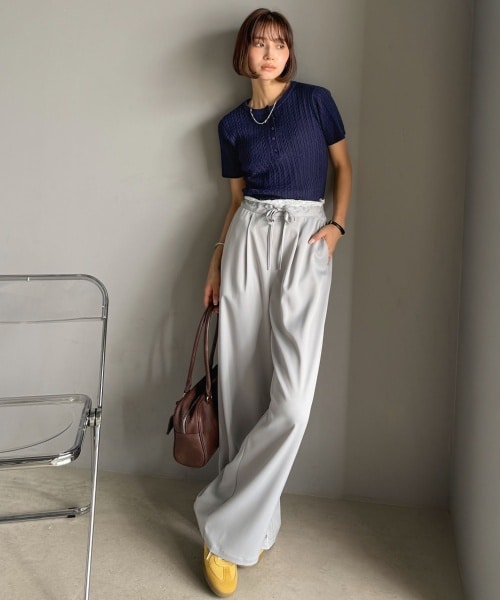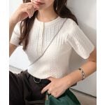 ミニケーブル編みとすっきりとしたシルエットがトレンド感のある一枚。 一枚で着ても、ジャケットやアウターのインナーにも使いやすい万能アイテム! 気軽に合わせやすいベーシックなカラー展開で、カジュアルにもエレガントにも着回し可能◎