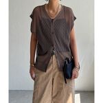シャリ感のある透かし編みが涼しげな印象を与える2WAYベスト。