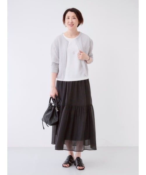 コットン素材のニットブルゾンはショート丈で程よくゆったり!着回し力バツグンのノースリーブ&ティアードスカート の2点セット!ウエストゴムのスカートは着回しに便利。ノースリーブトップスは優しい肌触りのジャージ素材を使用。サイドスリットでお腹周りが響きにくいデザイン。