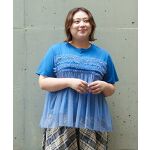 甘めなドット柄チュールトップスとカジュアルなフレアパンツを合わせて、甘すぎず可愛らしい大人スタイルの完成です♪深めのカラーなので秋先取りコーデにも◎