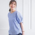 オンオフ使えるブラウスを定番のタイトスカートと合わせて着てみました。袖にはタックが入っていてボリューム感があるので、裾はインしてすっきりさせています。着丈は長めでお尻の真ん中くらいまであり、見頃はゆったりとしたサイズ感でした。