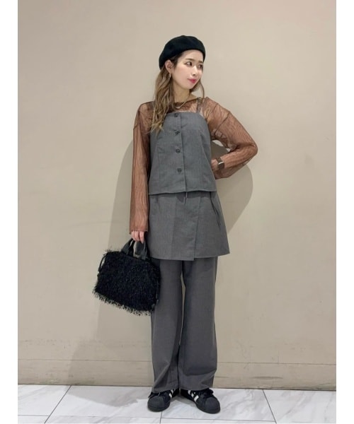 【着用サイズ いずれも:F】ラップスカートを重ねたデザインで、履くだけでレイヤードスタイルが決まる便利なパンツ◎スカートは取り外しもできるので単品でも着回しやすく、日常からお出かけまで幅広く活躍しそうです。