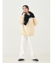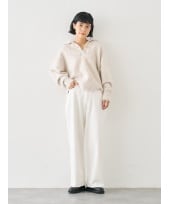 小ぶりな衿とフロントのタック、背中に入れたギャザーが立体感を生み、シンプルながら1枚で着ても手抜き感のないデザインです。 前後差をつけた着丈は、パンツともスカートとも相性が良く、コーデに自然な表情をプラス。