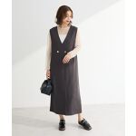 【着用サイズ ニット:F ジャンパースカート:F】シャリ感のあるジョーゼット生地を使用したジャンパースカート。肩後ろの折り返しデザインがさりげなく個性を引き立てます。