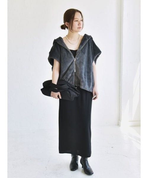 ジップを胸下まで開けて後ろに抜けるように着用しました。 首元はアクセサリーを重ねて着用することで華やかさをプラス。 普段サイズ:36 骨格:ウェーブ