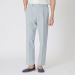 【パンツ】生地には綿・麻・ポリエステルの混紡糸を使用しています。ヴィンテージ加工により表面には繊細な凹凸感があり、独特な風合いがあります。また、バイオ加工を行うことで、表面の羽毛が落ちることですっきり綺麗な印象に仕上がっています。