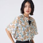 【トップス】フラワープリントが、お顔まわりを明るく見せてくれる一着です。適度なボリューム感のベルフレアスリーブが、涼しげで女性らしい印象を演出するブラウスです。【スカート】UV・接触冷感機能と動きやすさを兼ねそろえた、夏の装いにぴったりなスカートです。伸縮性に優れた素材を使用。