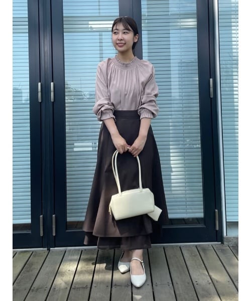 ??ブラウス: さらっとしており、晩夏から快適に過ごせる着心地でした♪ ??スカート:オールシーズン着れそうな素材で、高見えします!裾の部分がシアーになっているのが大人可愛かったです?