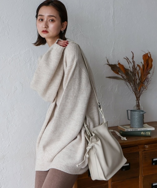 【Bags】ゆるい絞り巾着が魅力な、本革のショルダーバッグ。