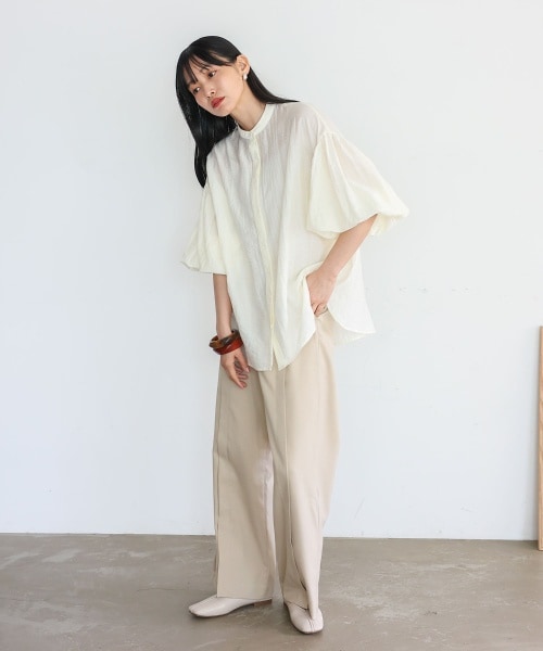 【Tops】さらっとしたドライタッチ素材で、暑い季節でも快適に着られる一枚。