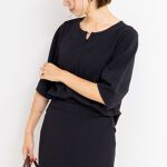 メタルバーが首元についているのでアクセサリーがなくても華やかなデザインです◎