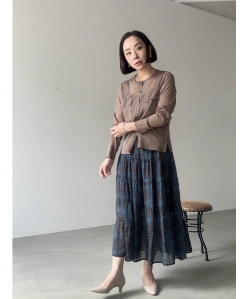 秋の軽やかきちんとコーデ パンプスにスカートでお出かけ。所作もどこかきちんと感がでそう。 長袖だけど薄手のカーディガンはキレイ見え抜群だから大活躍間違いなしです。
