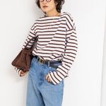 ネイビーにボーダーを合わせて、綺麗目のマリンスタイルに。