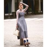 ワンピースはやや艶のある光沢感が上品見えして綺麗です!着心地もよく肩紐もアジャスターで長さ調節できるのがポイント。
