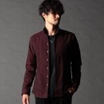 ブランド定番の長袖シャツでのコーデ。生地は、表面が無地、裏面がマルチストライプの定番オリジナル素材を使用。裏面のストライプ柄が、オシャレのアクセントに◎生地の色に合わせて、ボタンの色がそれぞれ異なるオシャレアイテムで、シルエットも細身のブランド人気No.1の逸品です!