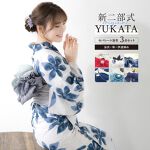 洋服のように簡単に着られるセパレートタイプの浴衣セット。クシュッと可愛い兵児帯(へこおび)は、結びやすくて初心者さんにもおすすめです。