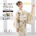 洋服のように簡単に着られるセパレートタイプの浴衣セット。クシュッと可愛い兵児帯(へこおび)は、結びやすくて初心者さんにもおすすめです。