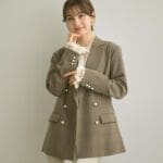 落ち着いたチェック柄のジャケットは、上質感と知的さを演出。パールボタンがクラシカルなアクセントとなり、シンプルなコーデを格上げします。マニッシュなジャケットをフェミニンに見せるデザインで、華やかさが引き立ちます♪