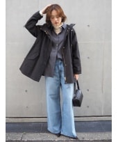 トップスにボリュームがあるぶん、ボトムはすっきりまとめてバランス良く。 アクセやバッグで少しアクセントを加えるのがおすすめです。