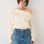 片方の肩をすっきりと見せる アシンメトリーデザインが、 抜け感のある色気を演出しつつ、 1枚でコーディネートの主役になるアイテムです。 カジュアルなデニムを合わせてバランス良く。