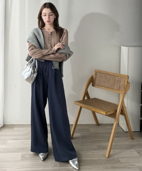 ほんのりゆるさのある絶妙シルエットが こなれた大人カジュアルを叶えてくれる◎ ボタンの開け閉めで、首元の抜け感も自在に♪