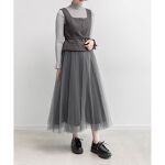 【シューズ】フィット感があるので足首細見え効果絶大です。太めヒールなので安定感もバッチリです。 【セットアップ】トップススカート別々でも使えるとっても便利なアイテムです!!トップスはインナーにニット合わせても着られるので長いシーズンで着用できます。